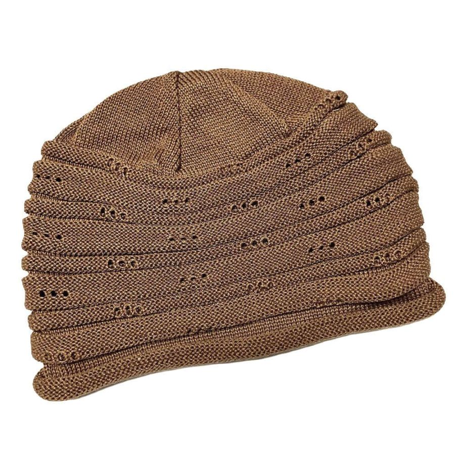 【抗がん剤治療】【医療用帽子】【ケア帽子】 宇野千代 編み地柄フード:ブラウン