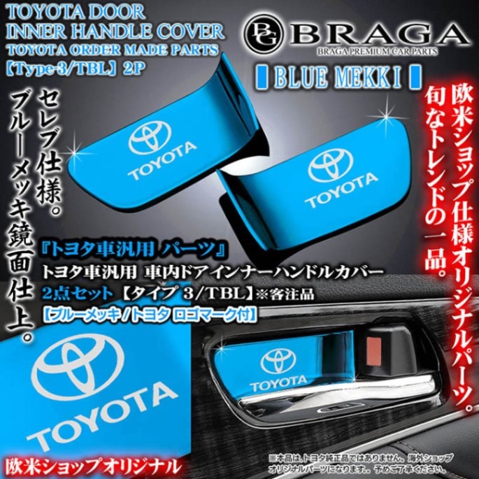 トヨタ【タイプ3/TBL】TOYOTAロゴ&トヨタマーク付/客注品/車内ドア インナーハンドルカバー[トヨタ車汎用品]《ブルーメッ...