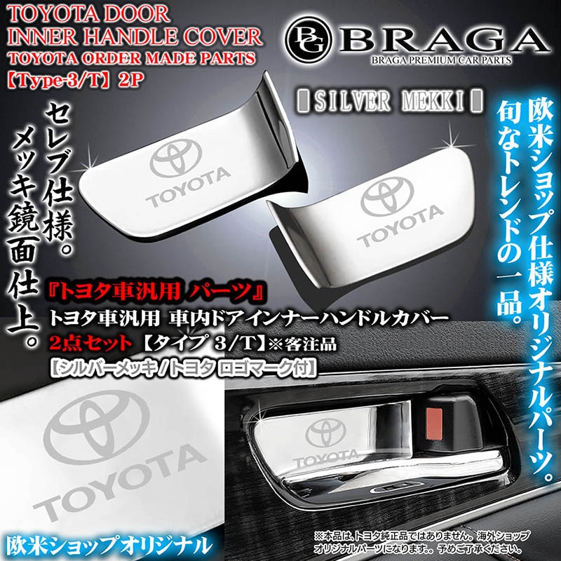 トヨタ【タイプ3/T】TOYOTAロゴ&トヨタマーク付/客注品/車内ドア インナーハンドルカバー[トヨタ車汎用品]《シルバーメッキ...