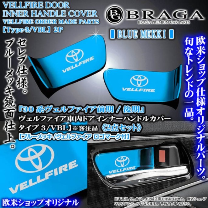 30系ヴェルファイア前期/後期【タイプ3/VBL】VELLFIREロゴ&トヨタマーク付/客注品/車内ドアインナーハンドルカバー《ブ...