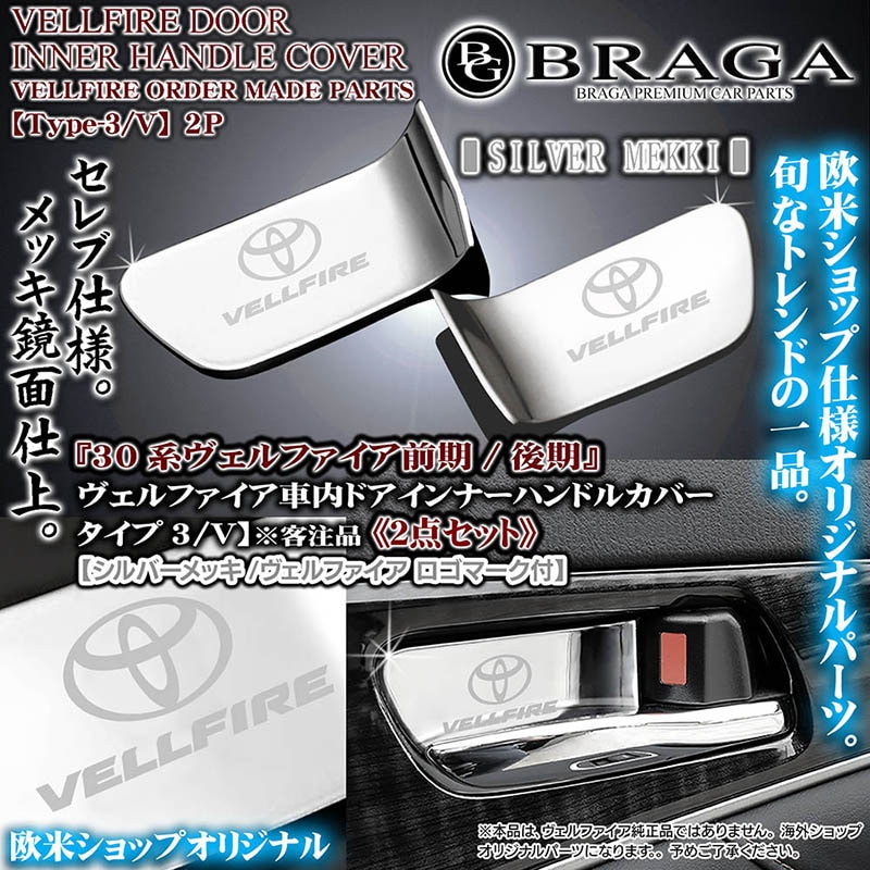 30系ヴェルファイア前期/後期【タイプ3/V】VELLFIREロゴ&トヨタマーク付/客注品/車内ドアインナーハンドルカバー《シルバ...