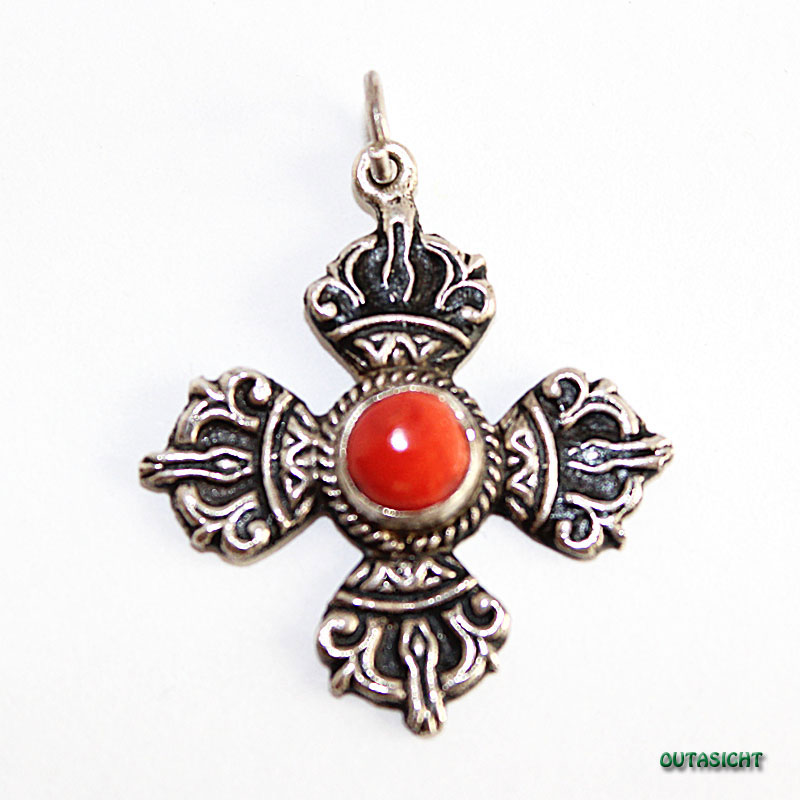 シルバーペンダントトップ Wドルジェ 珊瑚 ネパール SPS-102