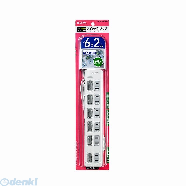 朝日電器 [WLS-LU62EB-W] LEDランプ スイッチ付タップ6P2m上