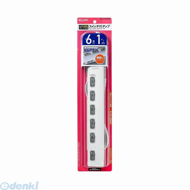 朝日電器 [WLS-LY61EB-W] LEDランプ スイッチ付タップ6P1m横