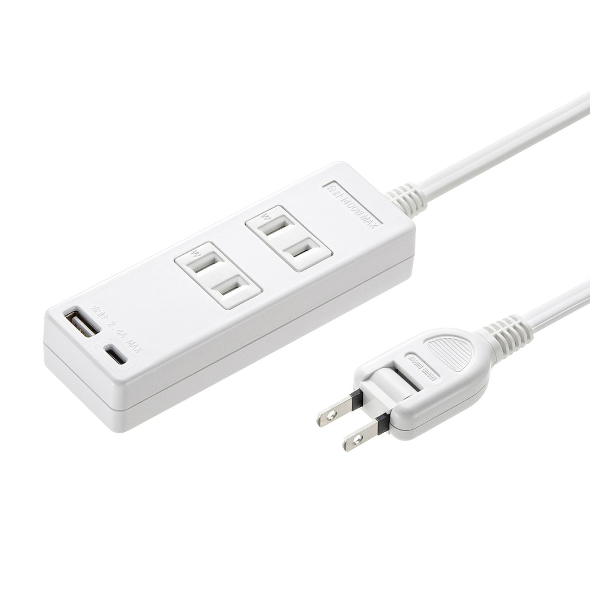 [TAP-B104UN] USB充電ポート付きモバイルタップ(2P・2個口・USB1ポート・白)