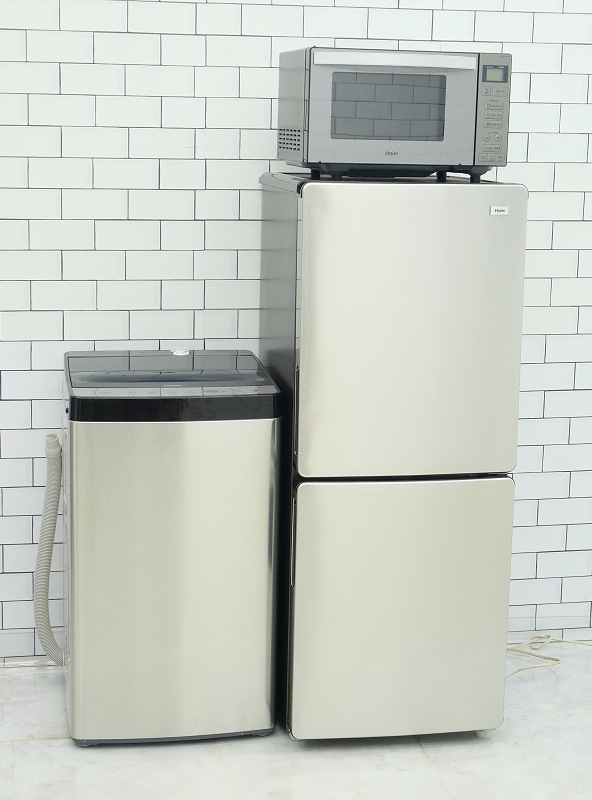 121L、5.5kg/23年、22年、22年製/Haier、Haier、ヤマダ製/(冷蔵庫、洗濯機、オーブンレンジ)中古家電3点セ...