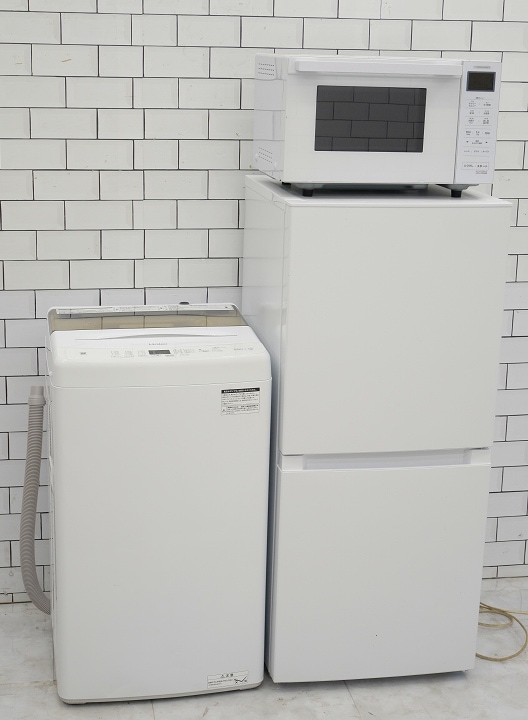 135L、5.5kg/23年、21年、24年/アクア、Haier、アイリスオーヤマ製/(冷蔵庫、洗濯機、電子レンジ)中古家電3点セ...