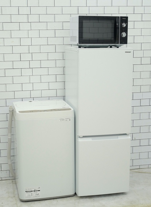 179L、6kg/23年、24年、22年製/シャープ、シャープ、東芝製/(冷蔵庫、洗濯機、フラット型電子レンジ)中古家電3点セット