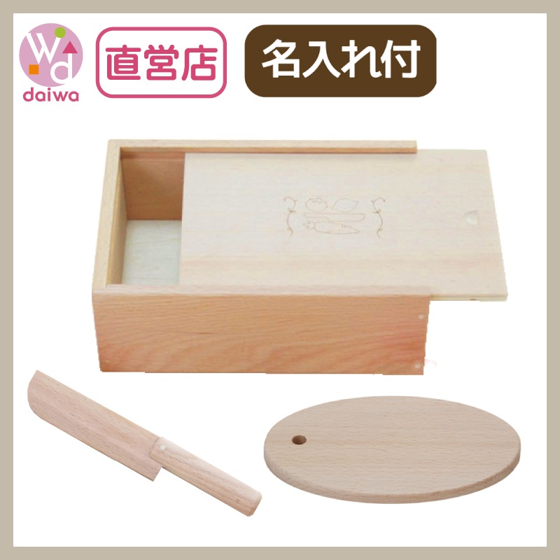 名入れ付き・包丁屋さん3点セット〈木箱・まな板・包丁〉 (木のおもちゃ ままごと)
