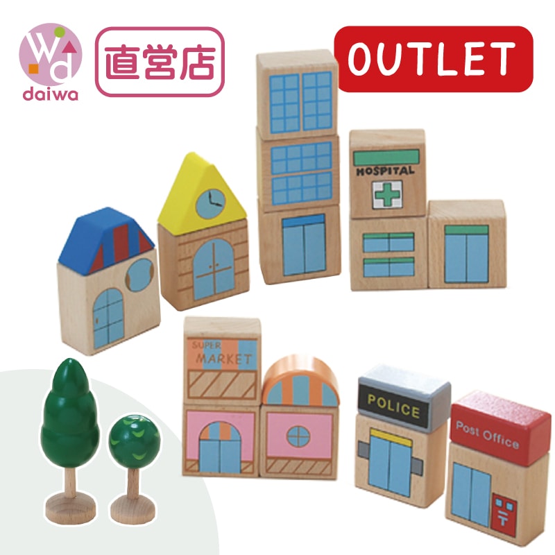 OUTLET建物7種セット・木セット付き(木のおもちゃ 汽車レール)