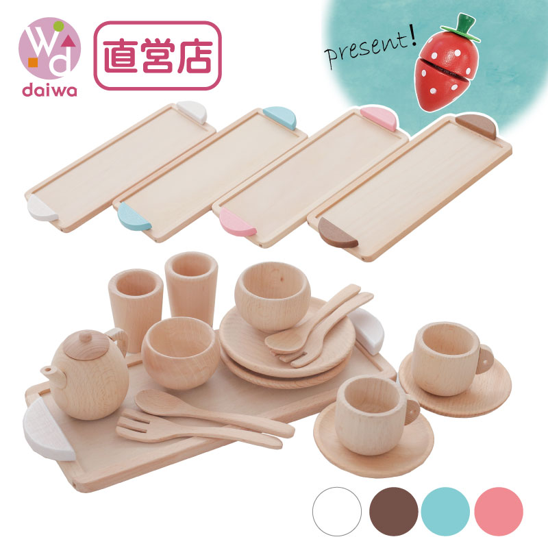 《presentいちご付き》カラーが選べるミニ食器セット 《専用BOX*包装不可》 (木のおもちゃ ままごと)