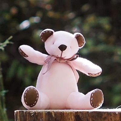 名入れ刺しゅうで、世界にひとつのカシミヤ・テディベア。ベビーピンク色のローズ・ベビーベア【15cm】