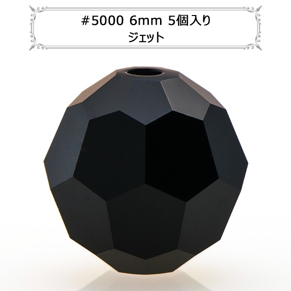 スワロフスキー 『#5000 Round cut Bead ジェット 6mm 5粒』