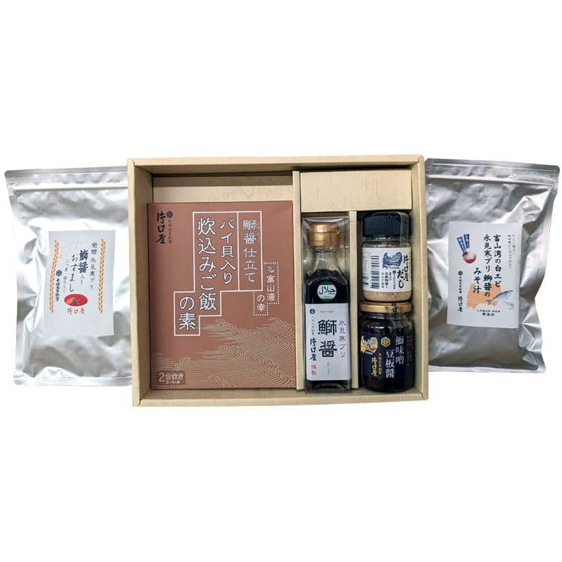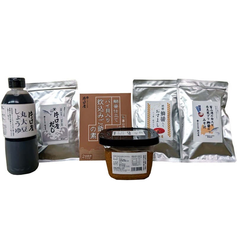 片口屋:ブリ調味料セット(鰤醤,鰤味噌豆板醤,炊き込みご飯の素,卓上だし,即席みそ汁,おすまし)