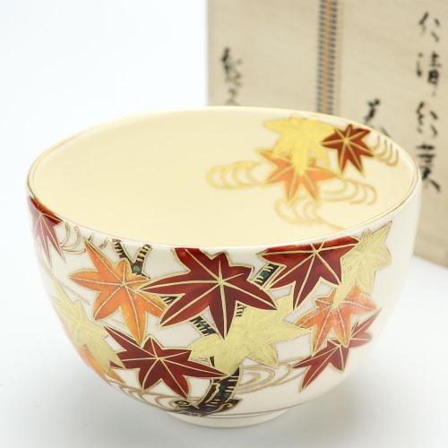 抹茶茶碗 色絵 紅葉 相模竜泉作 秋物 茶道具 陶磁器 茶の湯用品 お点前用