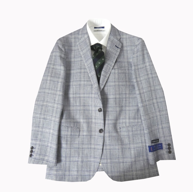 麻混ジャケット メンズ 春夏 スタンリーブラッカー(stanley blacker) グレンチェック 紺 0385 A7(ALL)