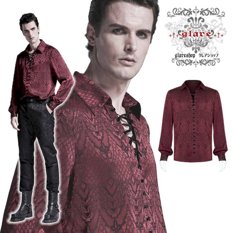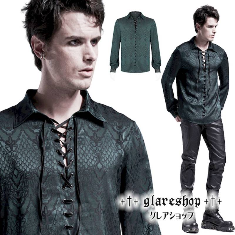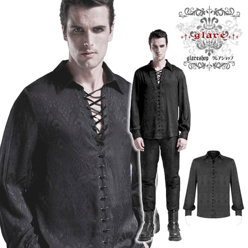glareshop グレアショップ「M.S-M.5XL」TX888-N■ゴシック ジャガード レースアップ カジュアルシャツ グリ...