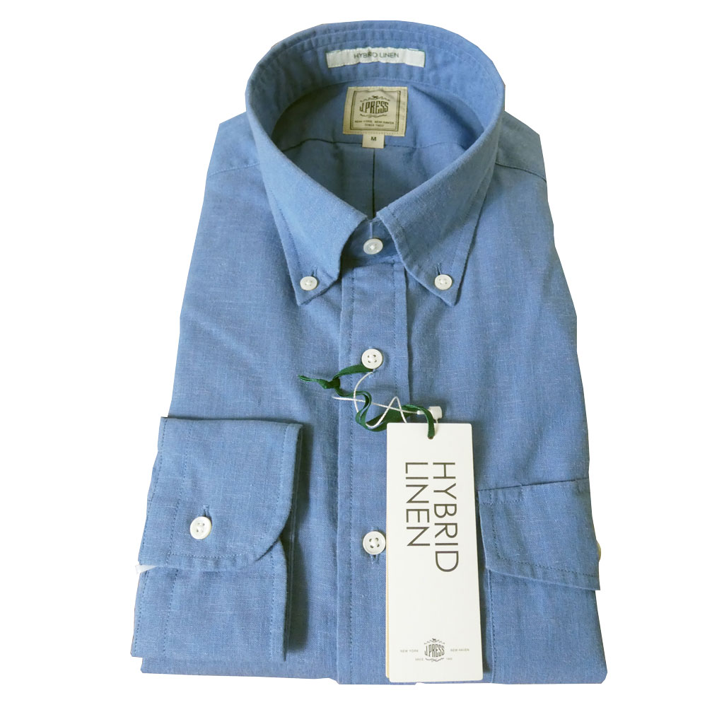 J.PRESS(ジェイプレス) ボタンダウン 麻混長袖シャツ ハイブリッドリネン サックスブルー 1073 M L XL