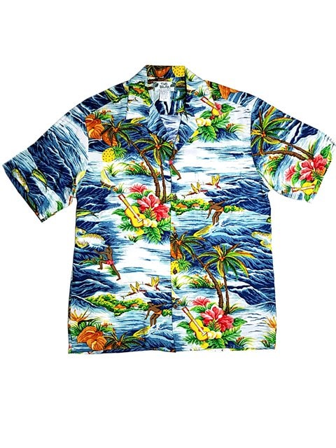 HAWAII アロハシャツ TWO PALMS 501C Hula Gal navy