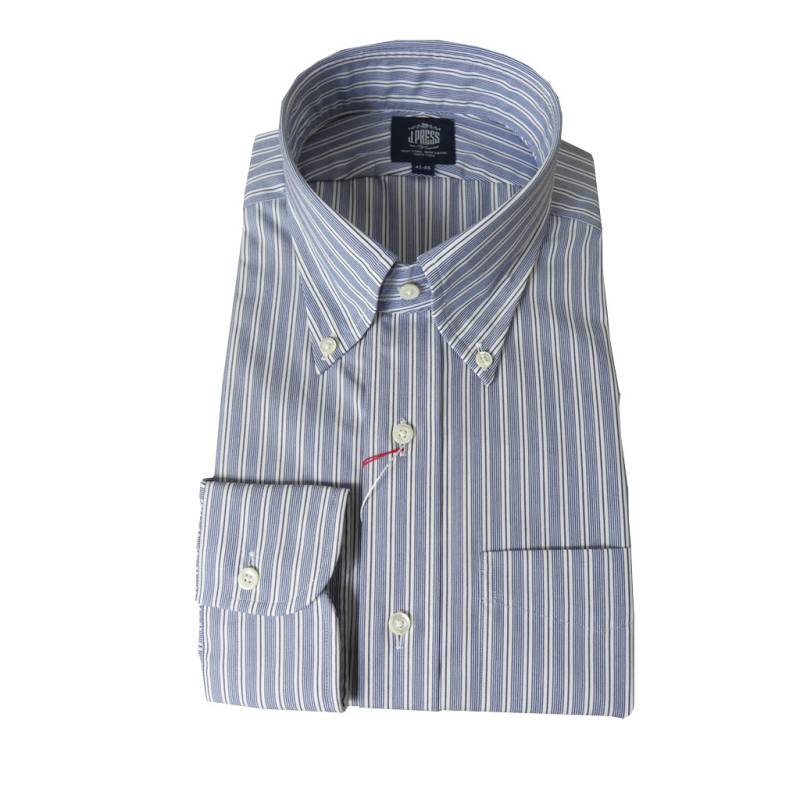 ジェイプレス (J.PRESS) ボタンダウンシャツ メンズ長袖シャツ ネイビー ストライプ 3175(衿39cm-裄丈84cm...