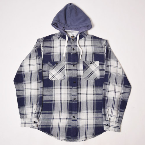 Towncraft×US/Hooded Flannel Shirt(タウンクラフト×アス フードシャツ)ネイビー×ホワイト [a-...