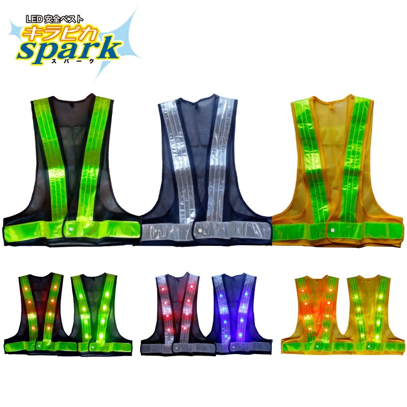 LED安全ベスト「キラピカspark」交互点滅 ミズケイ 安全ベスト LED 夜間 工事 警備 赤白LED 赤青LED