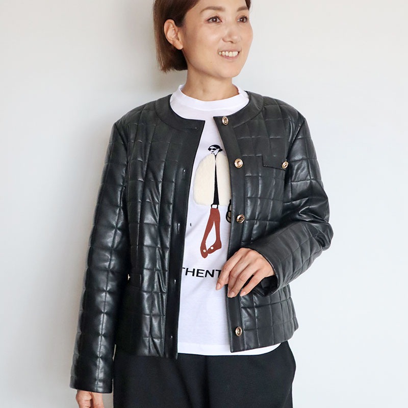 キルティングエコレザーノーカラージャケット/COOMB 9014
