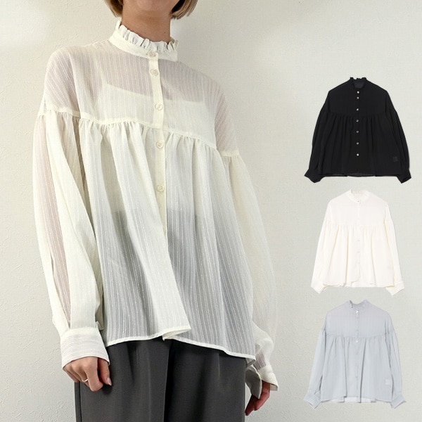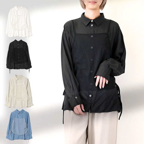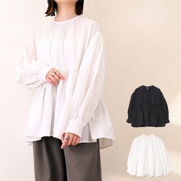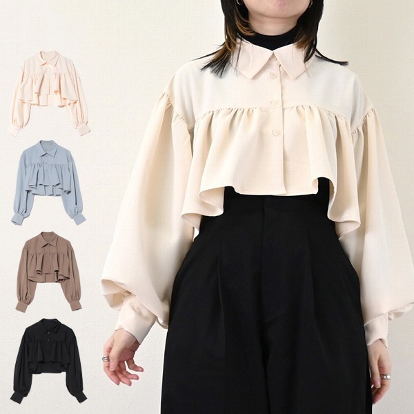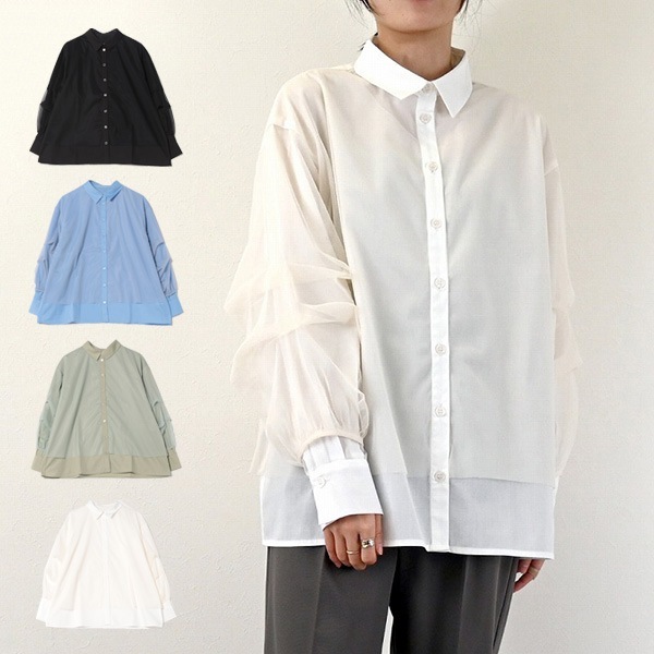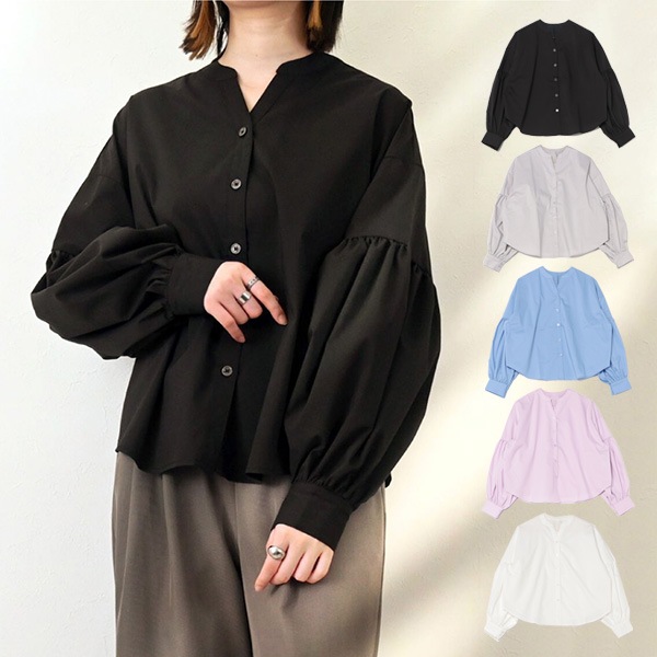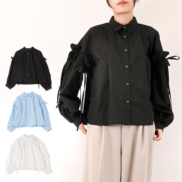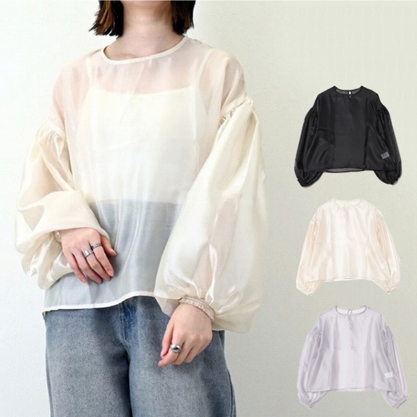 シアーシャイニーポプリンボリュームスリーブシャツ