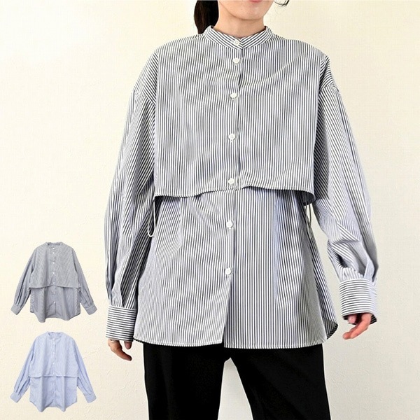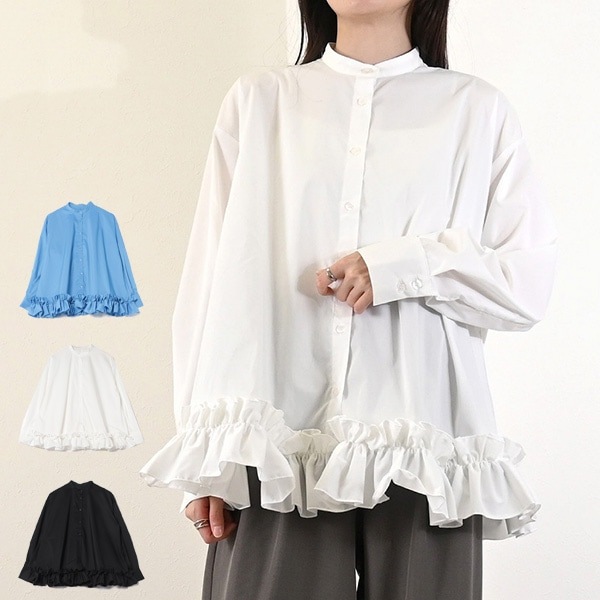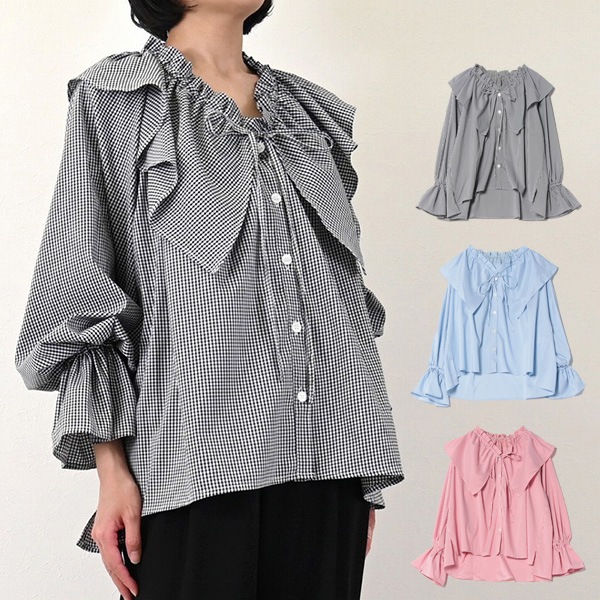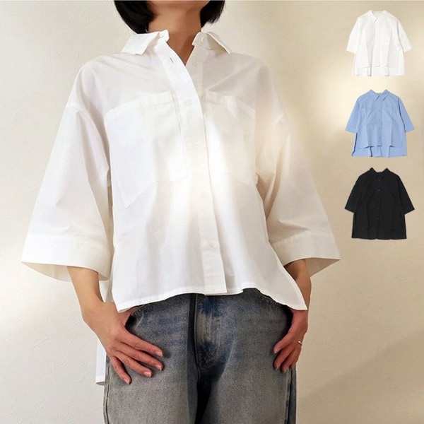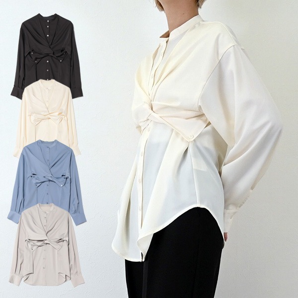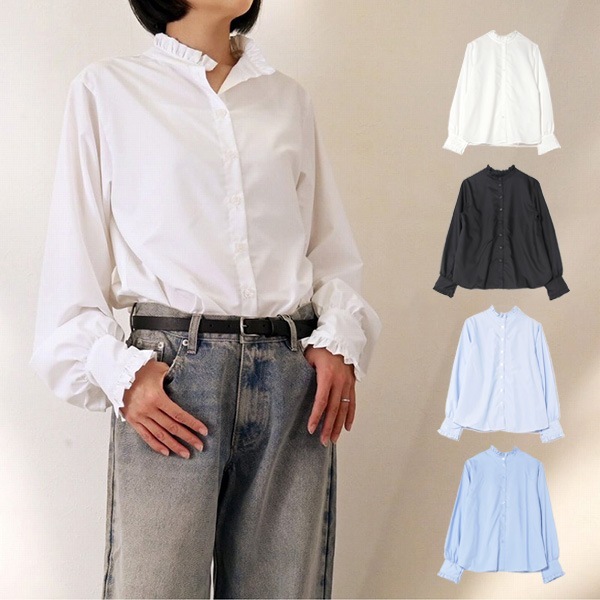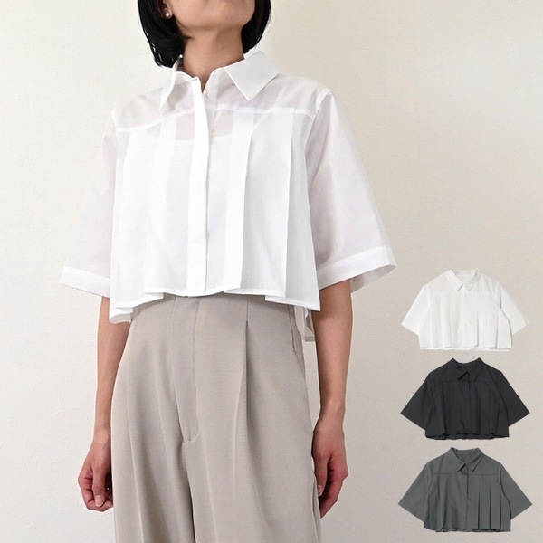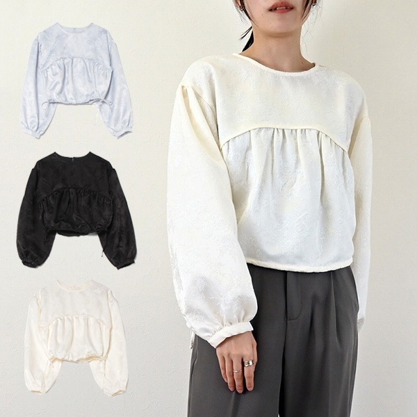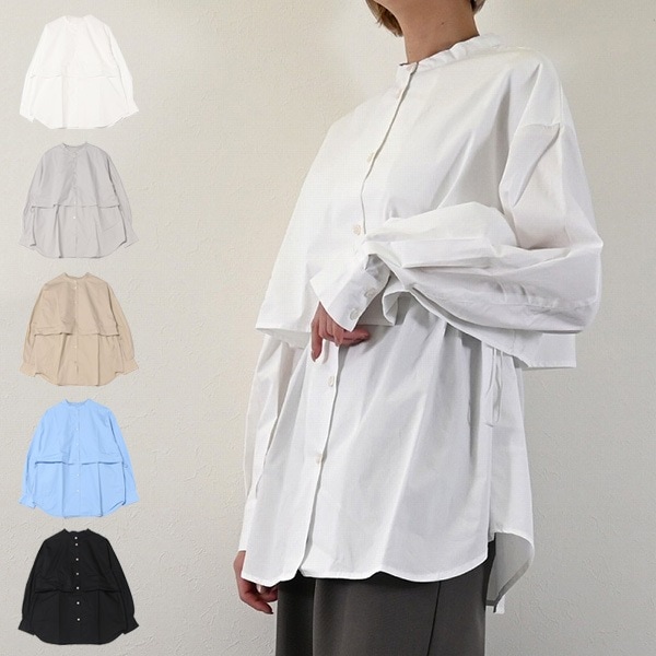 シアーシャイニーポプリンボリュームスリーブシャツ