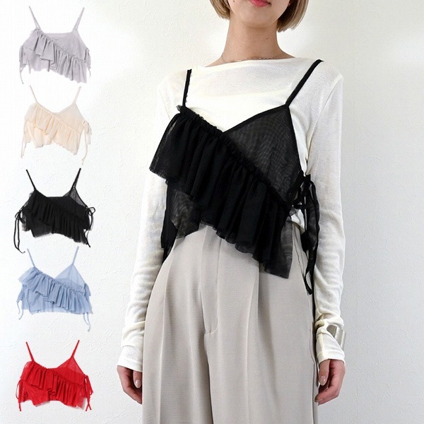 シアーミニフリンジジャガードラッフルカラークロップドブラウス