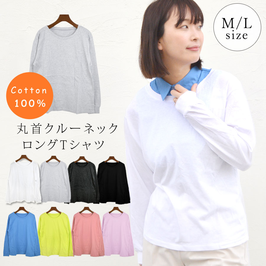 カットソー ロンT レディース 綿100 長袖 トップス コットン 無地 シンプル ゆったり ワイド 【送料pt100】