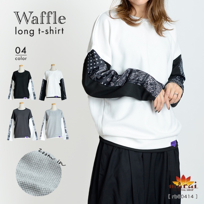 1枚で大人ラフなコーディネートを。ワッフル長袖カットソー