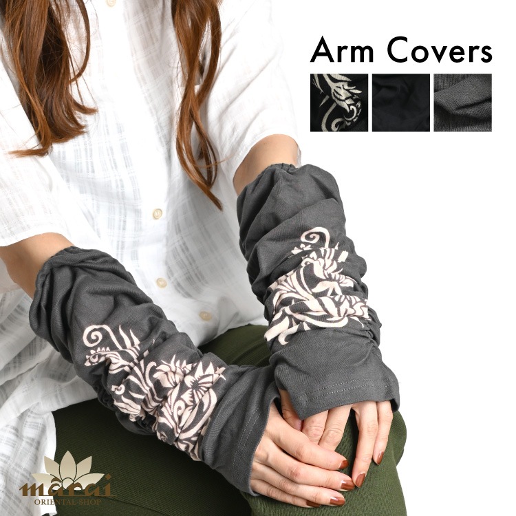 いつでもどこでも。ロータスアームカバー アームカバー 指穴あり 日焼け対策 腕カバー おしゃれ くしゅくしゅ 手袋 スポーツ アウ...