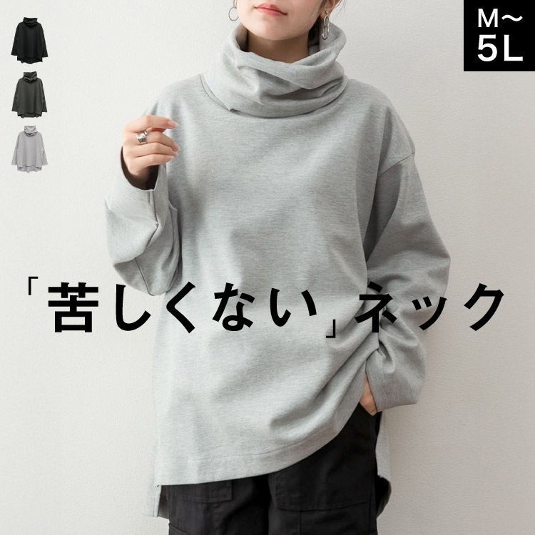 カットソー ハイネック レディース 長袖 大きいサイズ 綿100% プルオーバー トップス Tシャツ ロンT スムースコットン 厚...