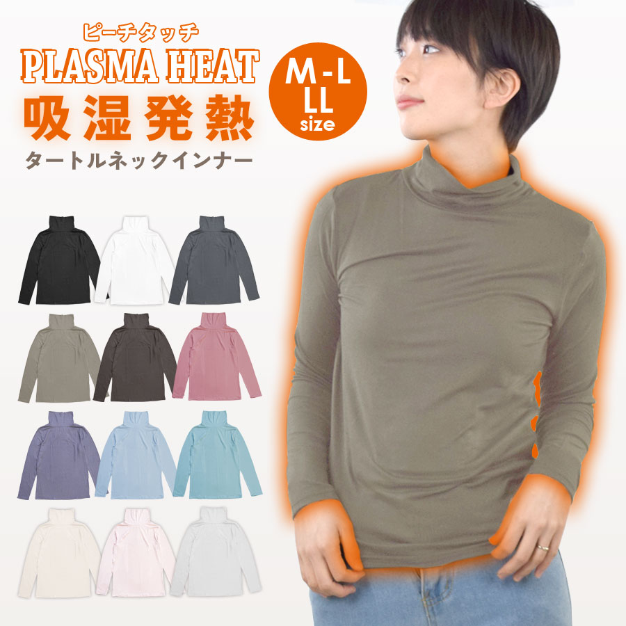 インナー 長袖 タートルネック ヒートインナー 暖か 吸湿 発熱 保温 裏起毛 ピーチタッチ 肌着 【送料pt100】