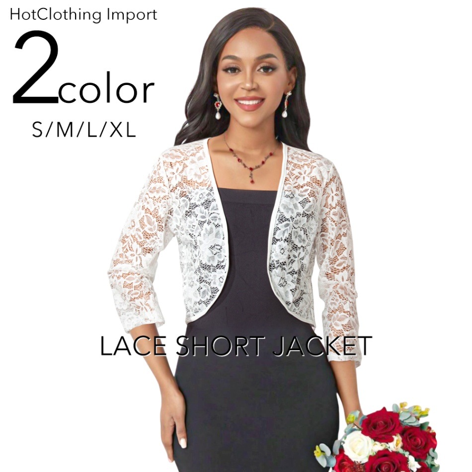 再入荷 総レース 花柄 七分袖 ボレロ カーディガン ショート丈【LAインポート】-ls-sj-cd017