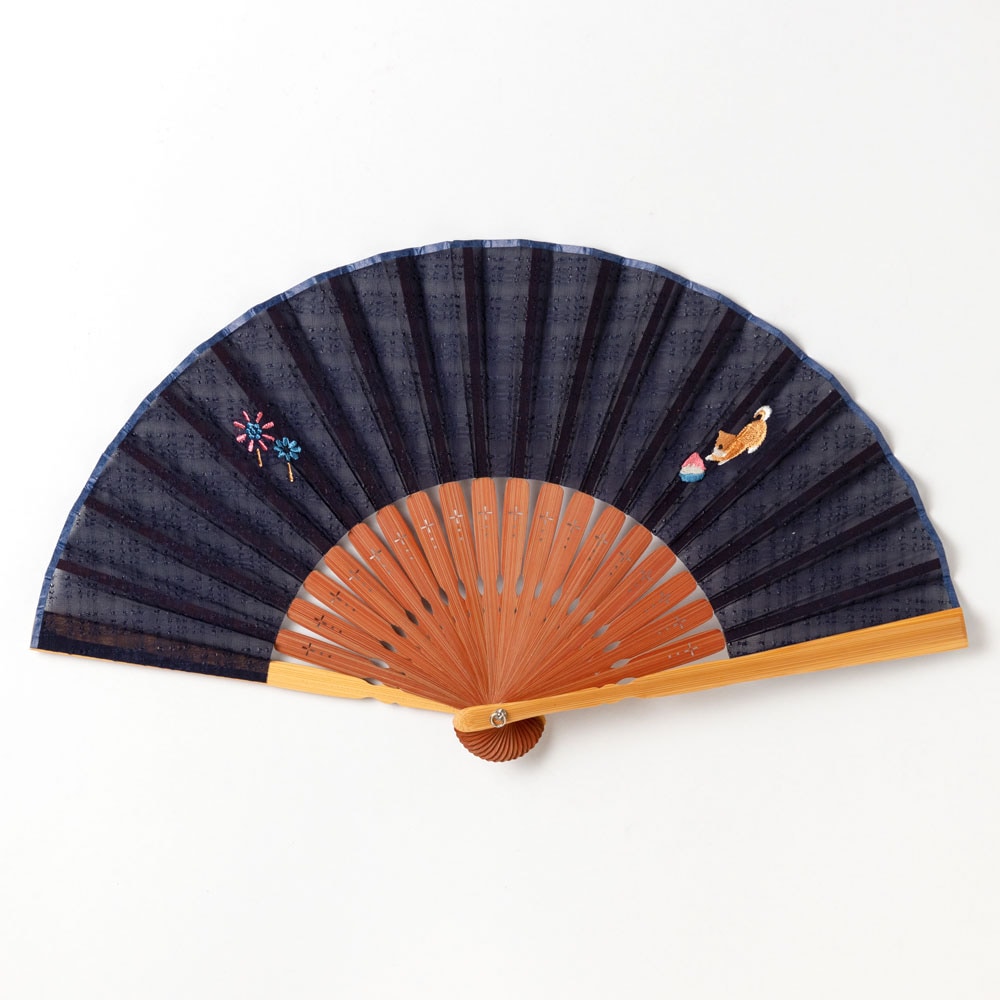 動物刺繍扇子2020 いぬ 刺繍入り布貼り扇子 女性向け スーベニール Sensu fan