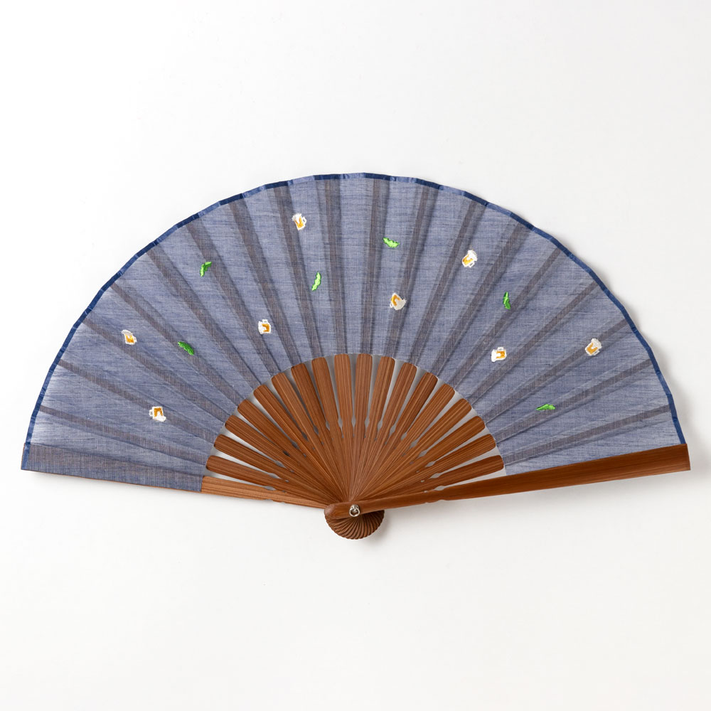 ちらし刺繍扇子2020 ビールと枝豆 刺繍入り布貼り扇子 男女兼用 スーベニール Sensu fan