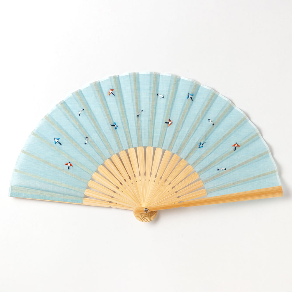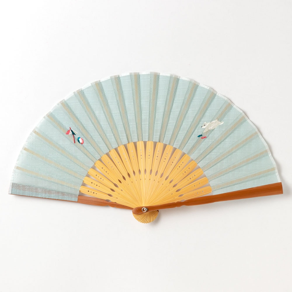 ちらし刺繍扇子2020 カモメとパラソル 刺繍入り布貼り扇子 男女兼用 スーベニール Sensu fan