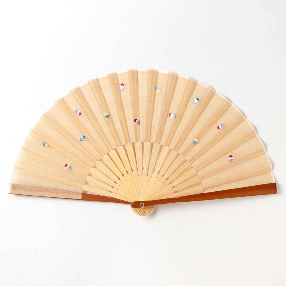 ちらし刺繍扇子2020 かき氷 刺繍入り布貼り扇子 男女兼用 スーベニール Sensu fan