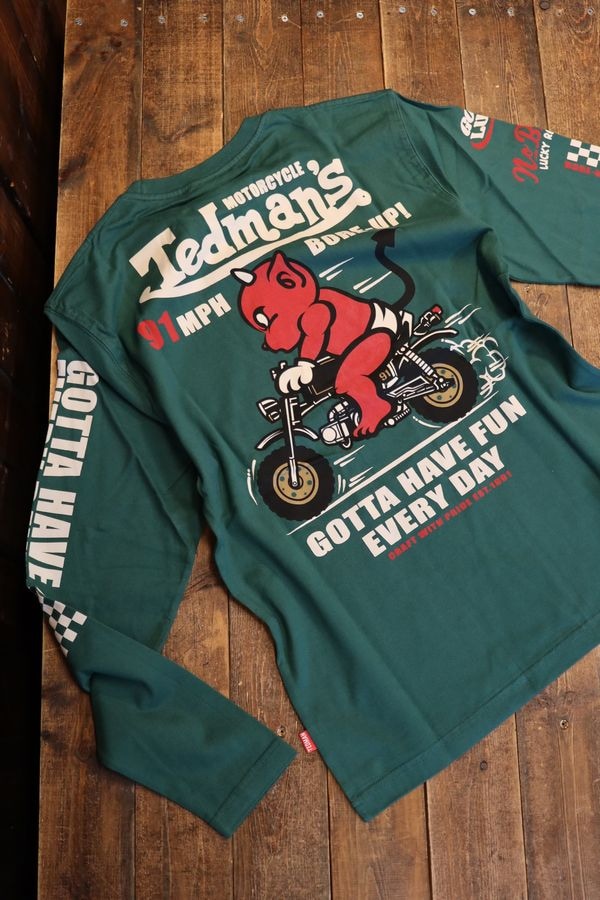 エフ商会 TEDMAN テッドマン TDLS-365 TED\'S MOTORCYCLE ゴリラ 長袖Tee ロンTee グリーン