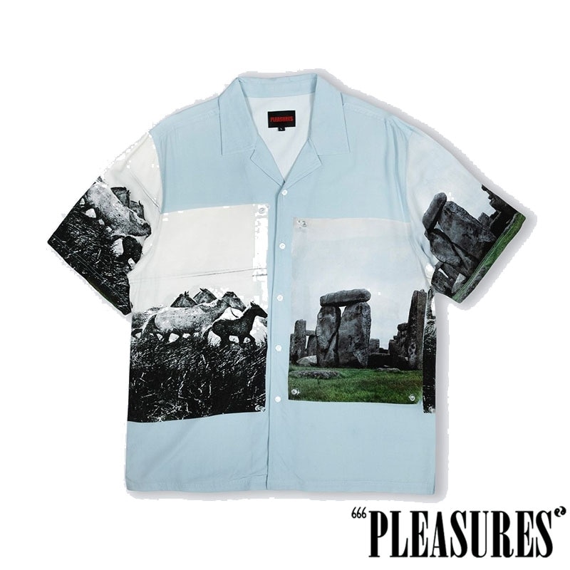 【PLEASURES/プレジャーズ】WHITE HORSE CAMP SHIRT 半袖シャツ / BLUE