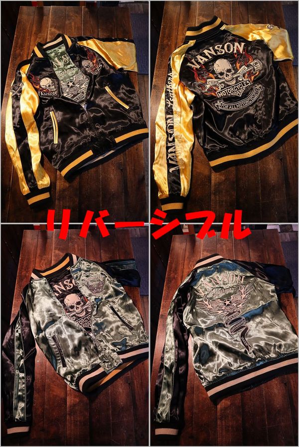 VANSON バンソン NVJK-2204 リバーシブルスカジャン スカル ウイング 刺繍