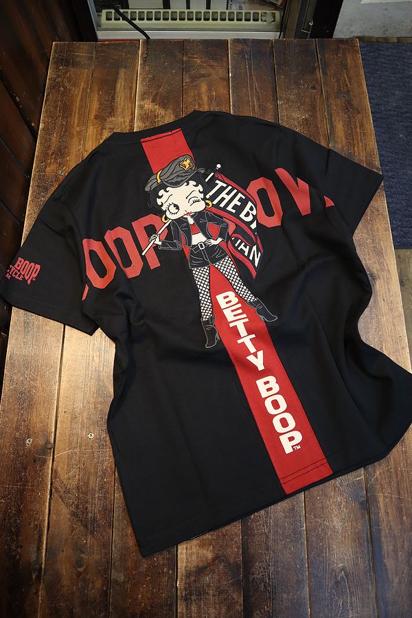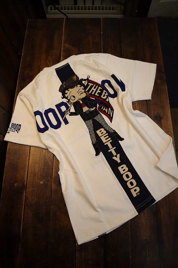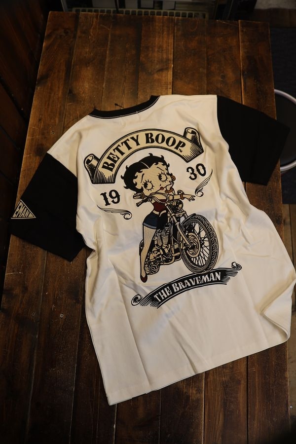 The BRAVE-MAN×BETTY BOOP BBB-2338 天竺半袖Tシャツ 刺繍 バイク オフホワイト×ブラック