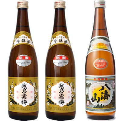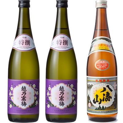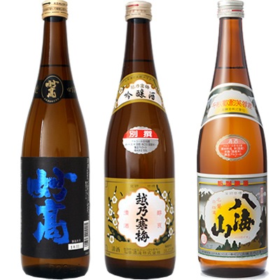 妙高 旨口四段 720ml と 越乃寒梅 別撰 吟醸 720mlと八海山 720ml