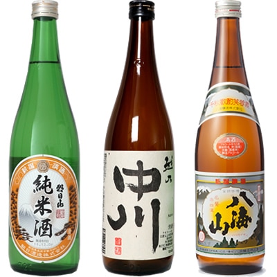 朝日山 純米酒 720ml と 越乃中川 720mlと八海山 720ml