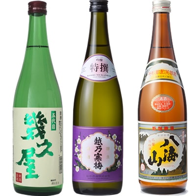 五代目 幾久屋 720ml と 越乃寒梅 特撰 吟醸 720mlと八海山 720ml