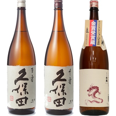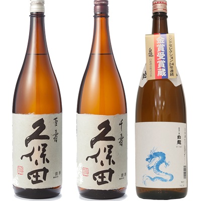 久保田 百寿 特別本醸 1800ml と 久保田 千寿 吟醸 1800mlと白龍「龍ラベル」辛口1800ml
