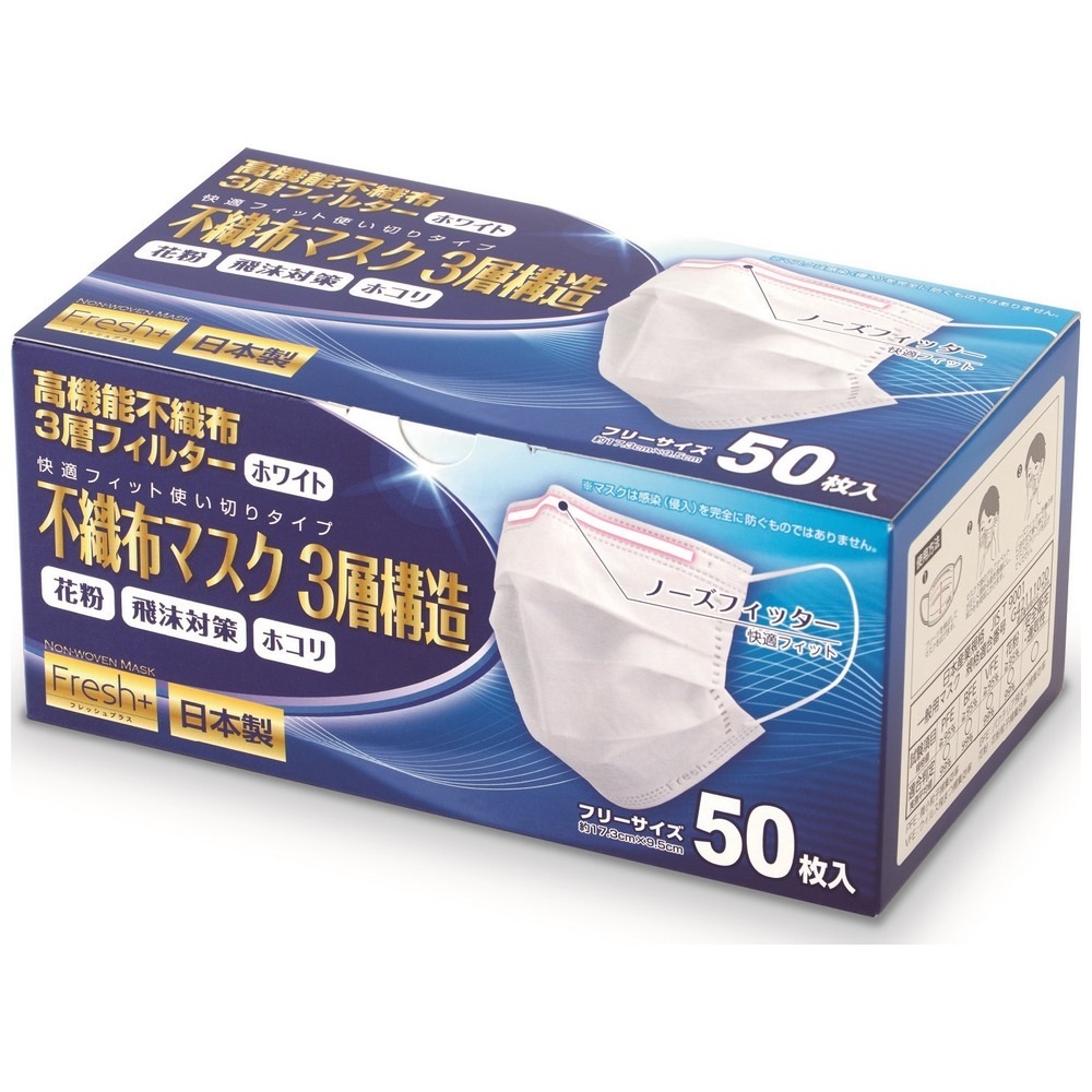 大黒工業 フレッシュプラス 不織布マスク 3層構造 日本製 フリーサイズ 50枚×40箱入(2000枚)●ケース販売お徳用【取り寄...