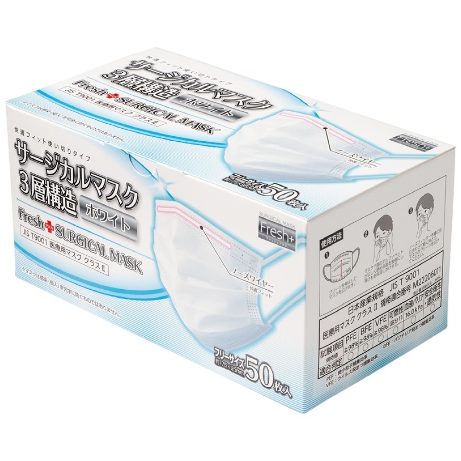 大黒工業 フレッシュプラス サージカルマスク 3層構造 医療用マスククラスII フリーサイズ 50枚×40箱入(2000枚)●ケー...